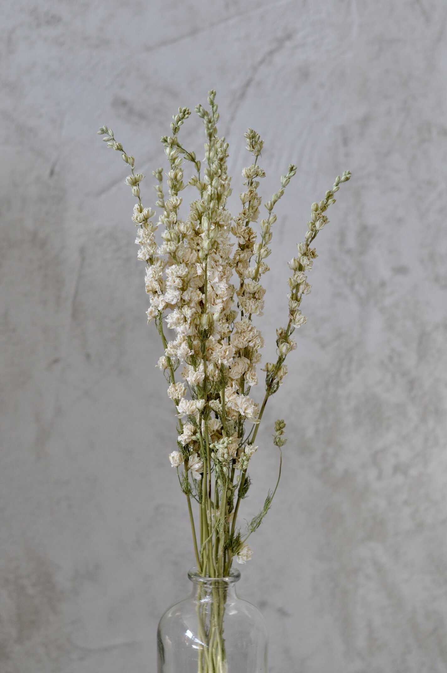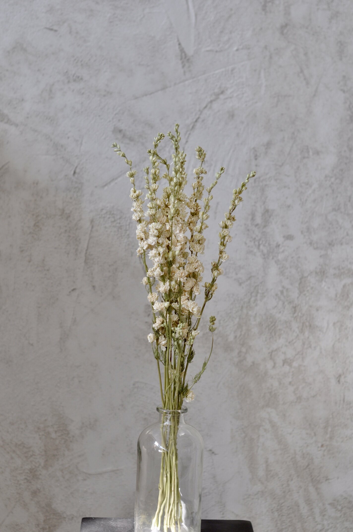 1 Bund getrockneter und stabiliserter Rittersporn besteht aus mehreren länglichen Stielen mit vielen kleinen Blüten umringt. Solo in einer Vase oder auch zum Verarbeiten und Basteln wunderbar geeignet hält diese stabiliserte Trockblumen ihre Schönheit sozusagen „ewig“.